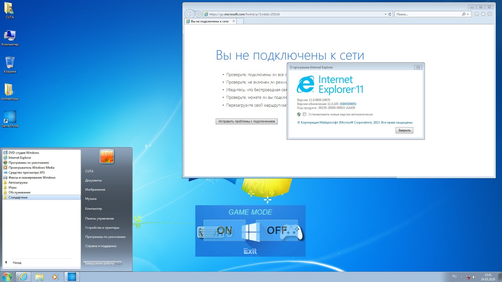 In this OS assembly on the desktop there is a small utility Game_Mode.exe. Immediately after its launch, you can turn on or off the "Game Mode".